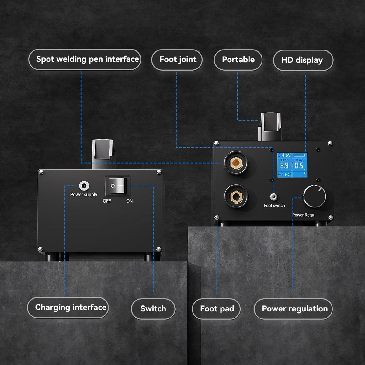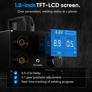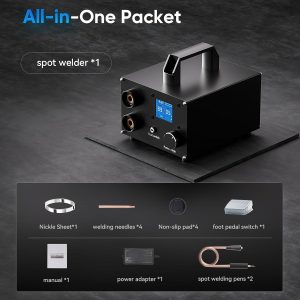 【250 Gears Adjustable】 3000F Capacitor Battery Spot Welder with LCD Display can automatically feelthe welding needle contact nickel belt, automatic output pulse, can also be connected to the foot switch.