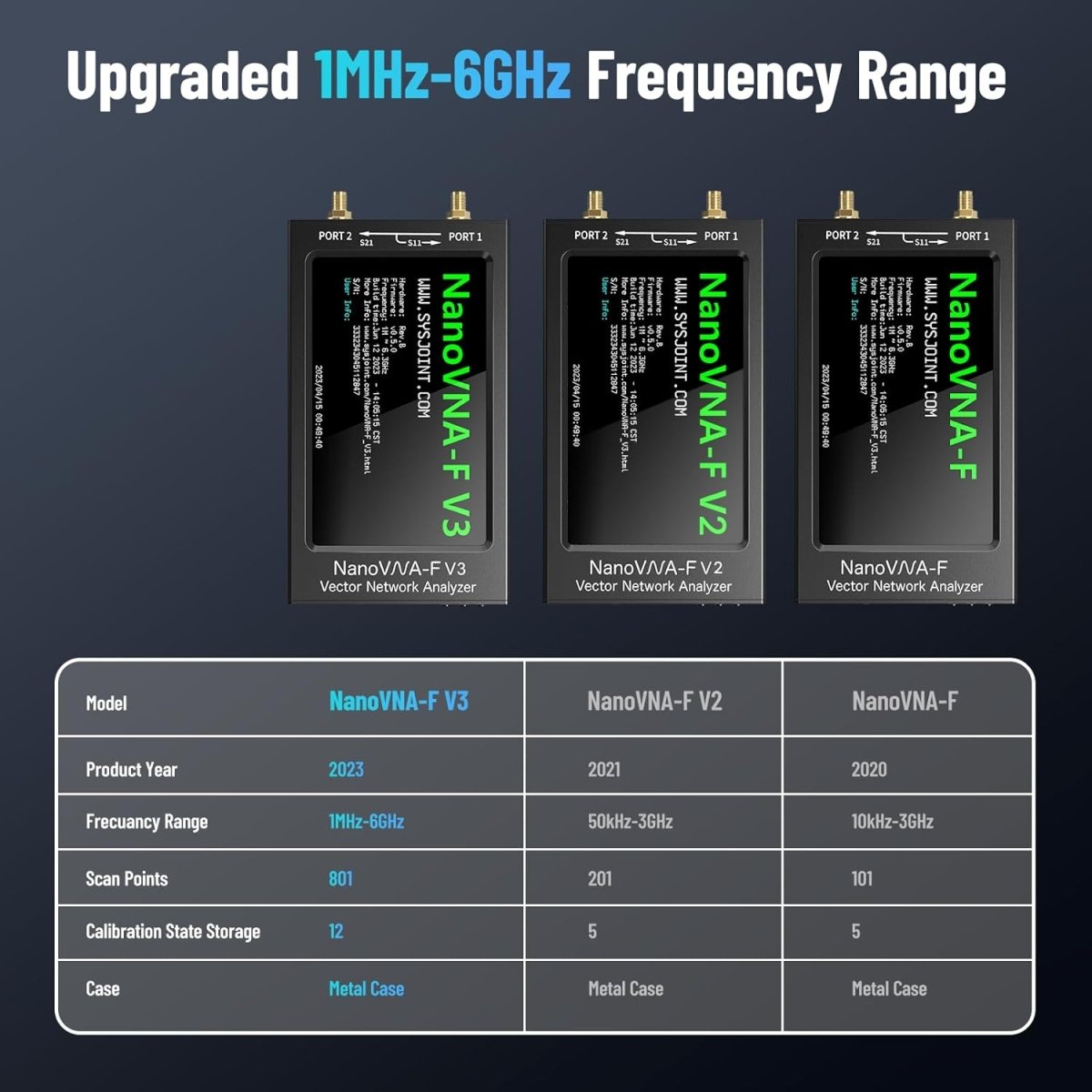 - ✅【Widely Frequency Range】: Compared to the Nanovna-F V2 (50kHz-3GHz), the upgraded Nanovna-F V3 has 1MHz-6GHz ultra-wide measuring frequency range, The S21 dynamic range of NanoVNA-F V3 is 65 dB, while the S11 dynamic range is 50 dB.
