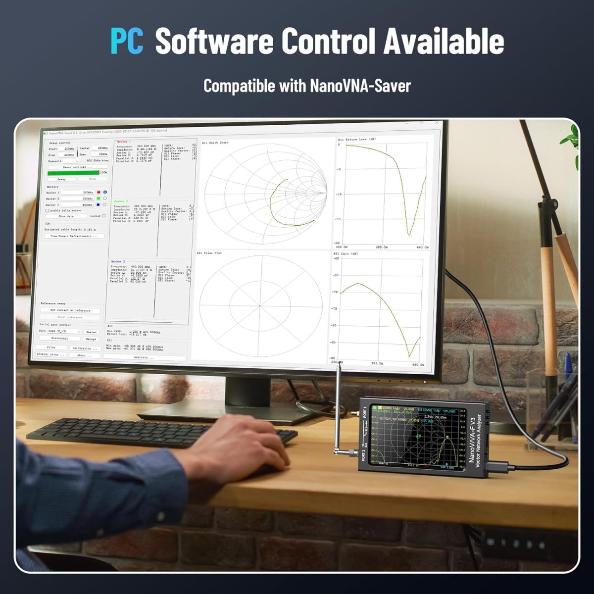 - 🎖️【Multiple Measurement Functions】: Seesii NanoVNA-F V3 antenna analyzer is suitable for antenna testing of MF/HF/VHF/UHF/SHF bands. Supports a variety of display formats: Log Mag, Linear Mag, Phase, Smith R+jX, Smith R+L/C, VSWR, Polar, Group delay, Resistance, Reactance, etc.