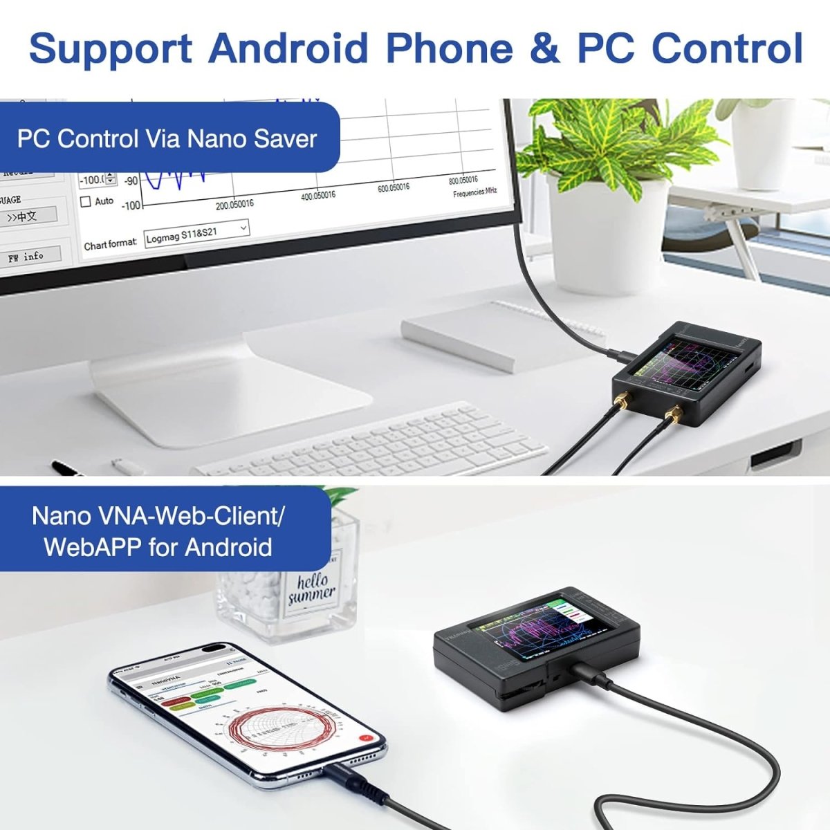【Original Equipment (OE) fit form and function】Simple and practical PC control software, you can export Touchstone (snp) files for various radio design and simulation software through PC software. The TX/RX method can measure the complete S11 and S21 parameters. If you need to obtain S12 and S22, please manually replace the transceiver port wiring.