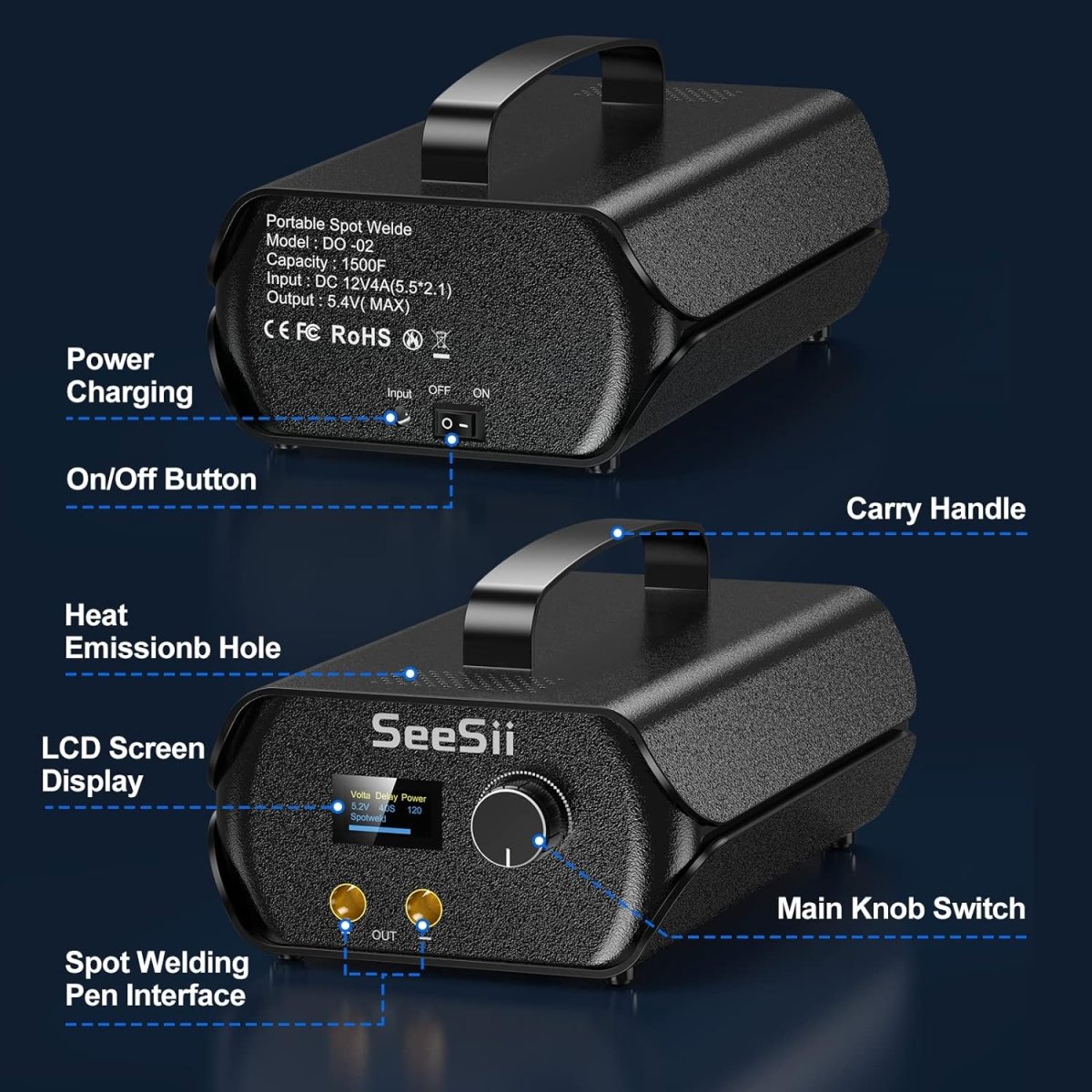 Seesii SE202 Spot Welder with Farad Capacitor 3000F 120 Gears Adjustable