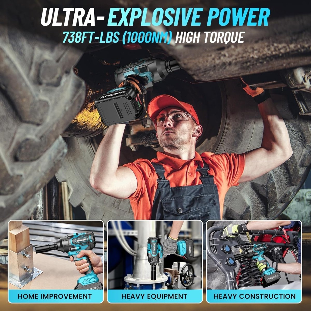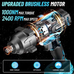 Seesii WH760 Cordless Impact Wrench- 1000Nm (738ft-lbs) 2*4.0AH Battery